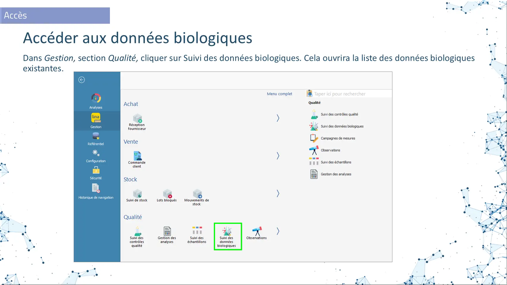 Accéder aux données biologiques