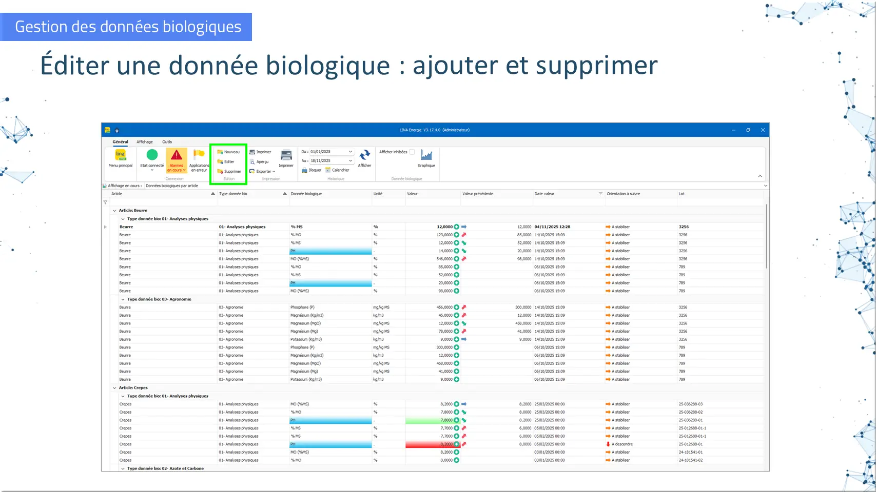Éditer une donnée biologique
