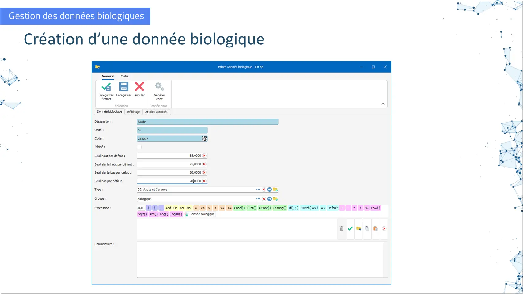Création d’une donnée biologique