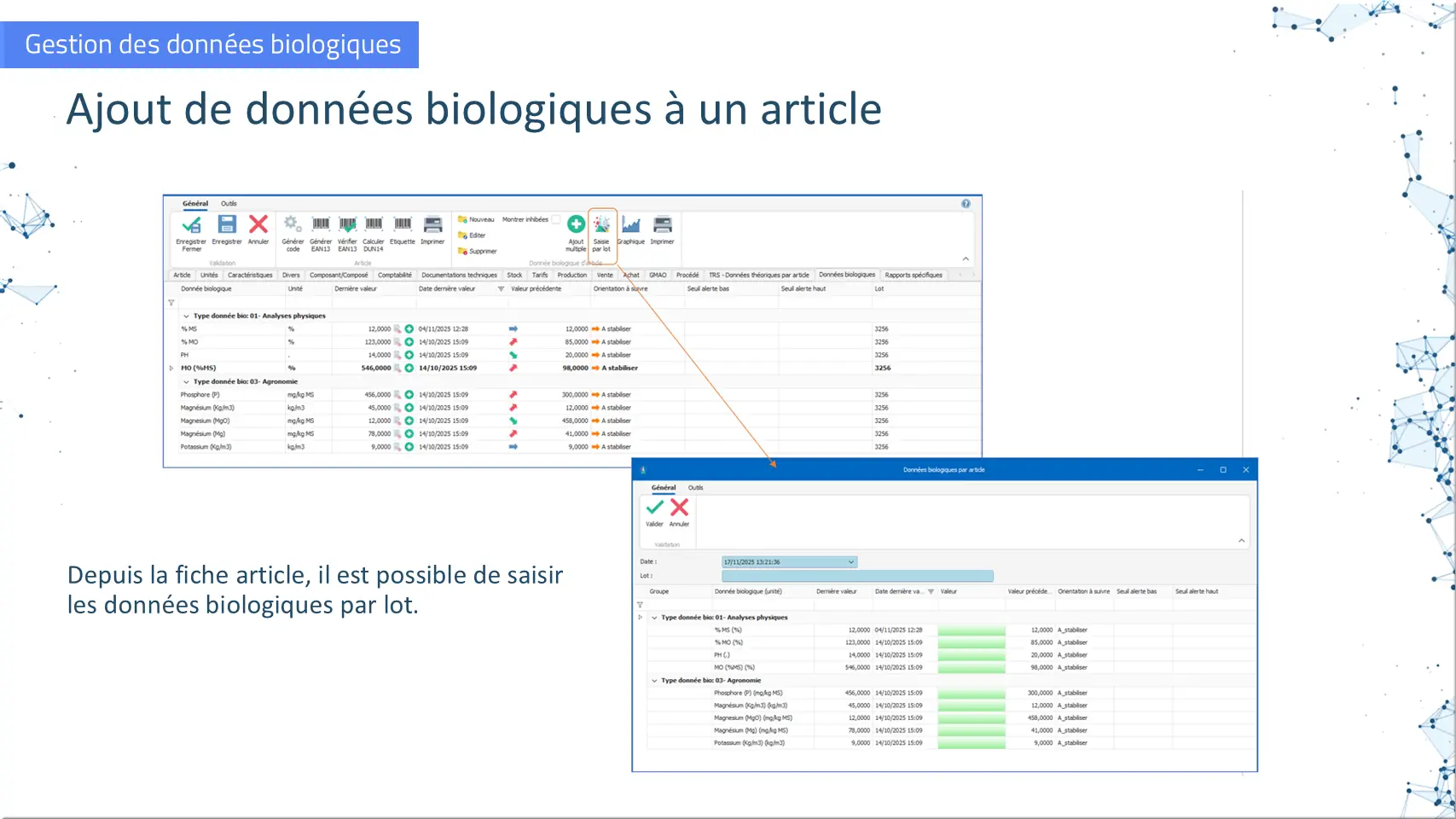 Ajout de données biologiques à un article