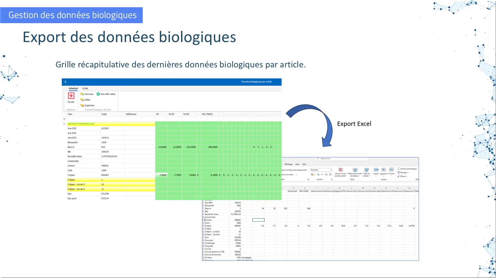 Export des données biologiques